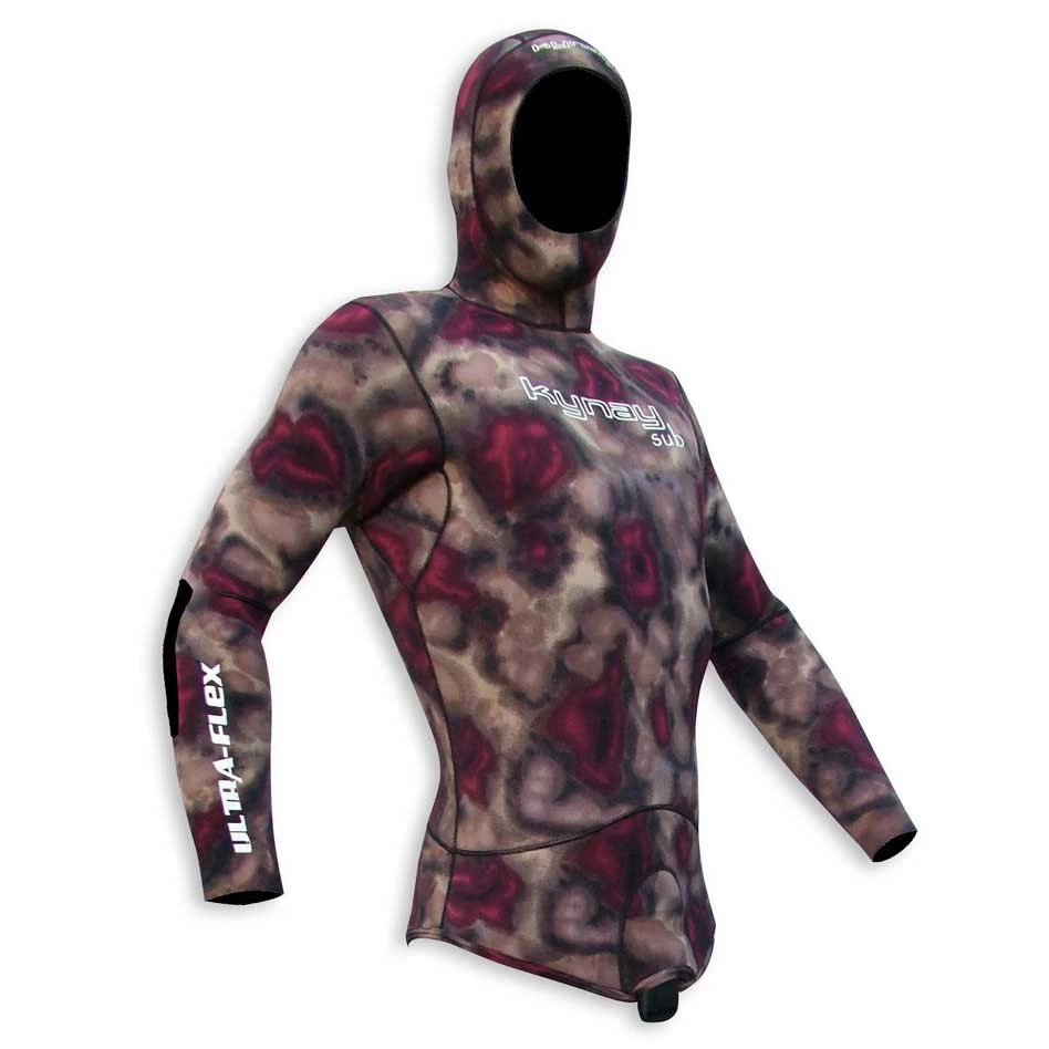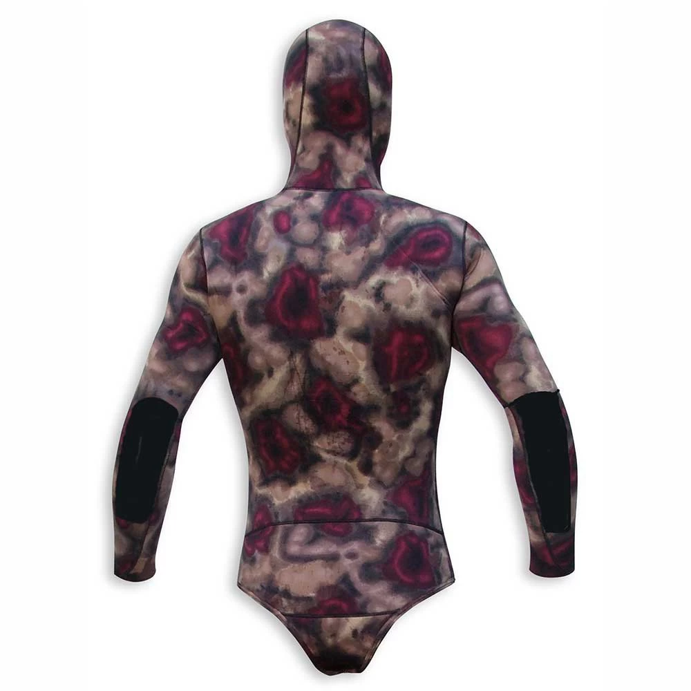 Camouflage Spearfishing jacket in 5mm, no zip.Dive jacket made in Yamamoto ultrastretch neoprene in 5mm thickness.Made with Yamamoto medium density Cell Skin neoprene inside and lined with a new ultra-stretch material that will give the angler complete freedom of movement.Completely pre-shaped, the cuffs have been removed to make it easier to put on and to make the suit more watertight, similar to surfing wetsuits.It has an internal load-bearing reinforcement and our characteristic and comfortable crotch fastening with an easy to fit and adjustable PVC buckle system.Its camouflage in various shades of sand, earth and red, has been designed for a great camouflage in all fishing areas. Elbow pads have been inserted for greater elasticity in the protected area.This jacket has been developed by our team of fishermen and tested all along the Spanish and Portuguese coast.Remind the user that this wetsuit is to be put on with soapy water.