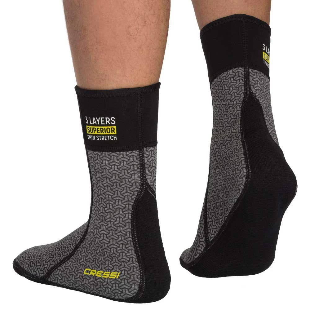 Usable with full foot fins in general and as an inner combination in cold waters.