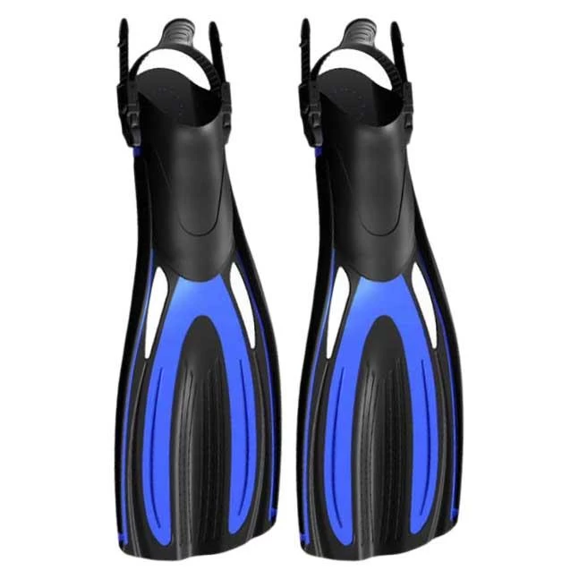 Professional Diving Fins. 5 sizes. Open heel foot. Super Channel technology which scoops water thoughout the kick, producing maximum trust. The fin blade also features drag reducing vents, as well as soft TPR foot pocket which reduces strain on the user´s feet.