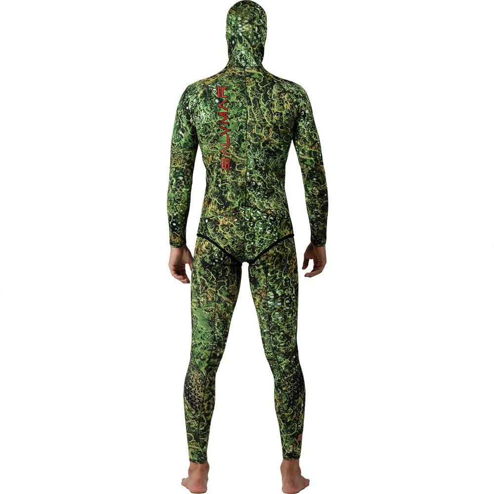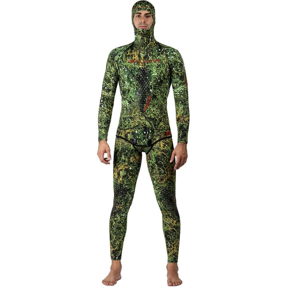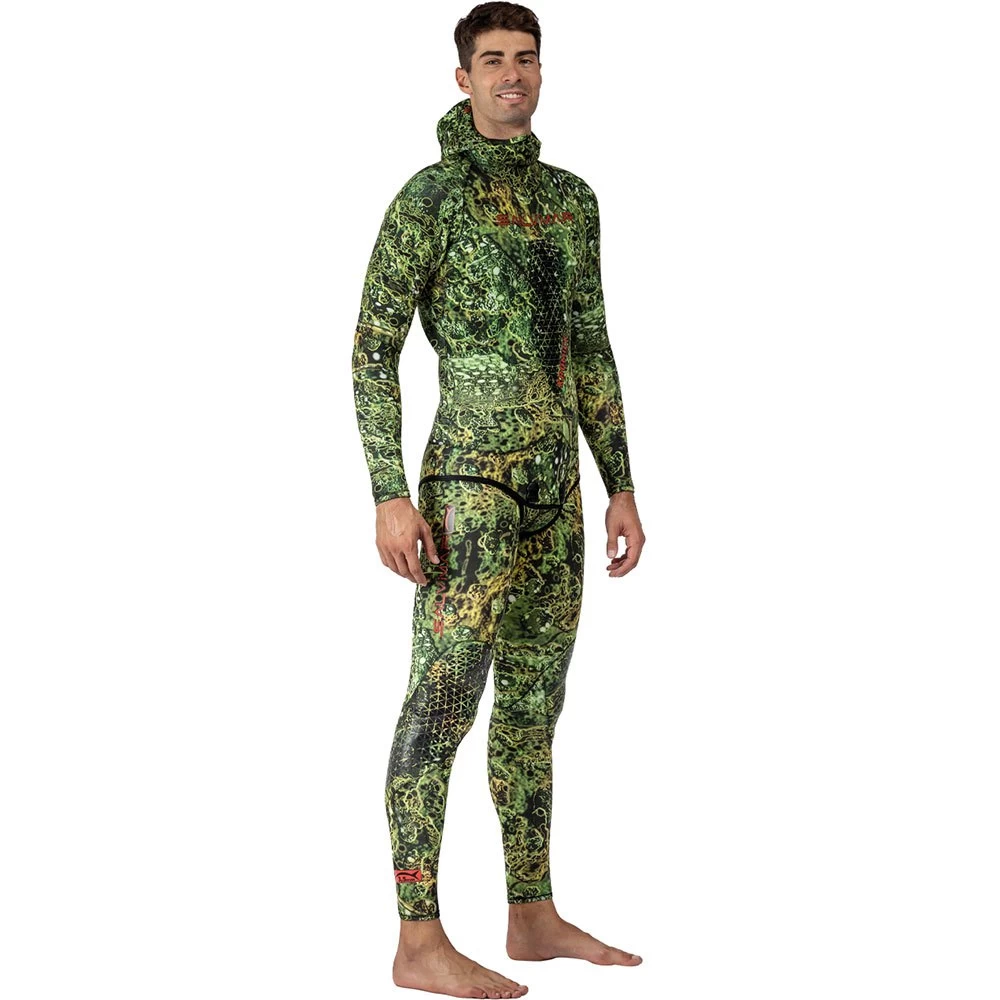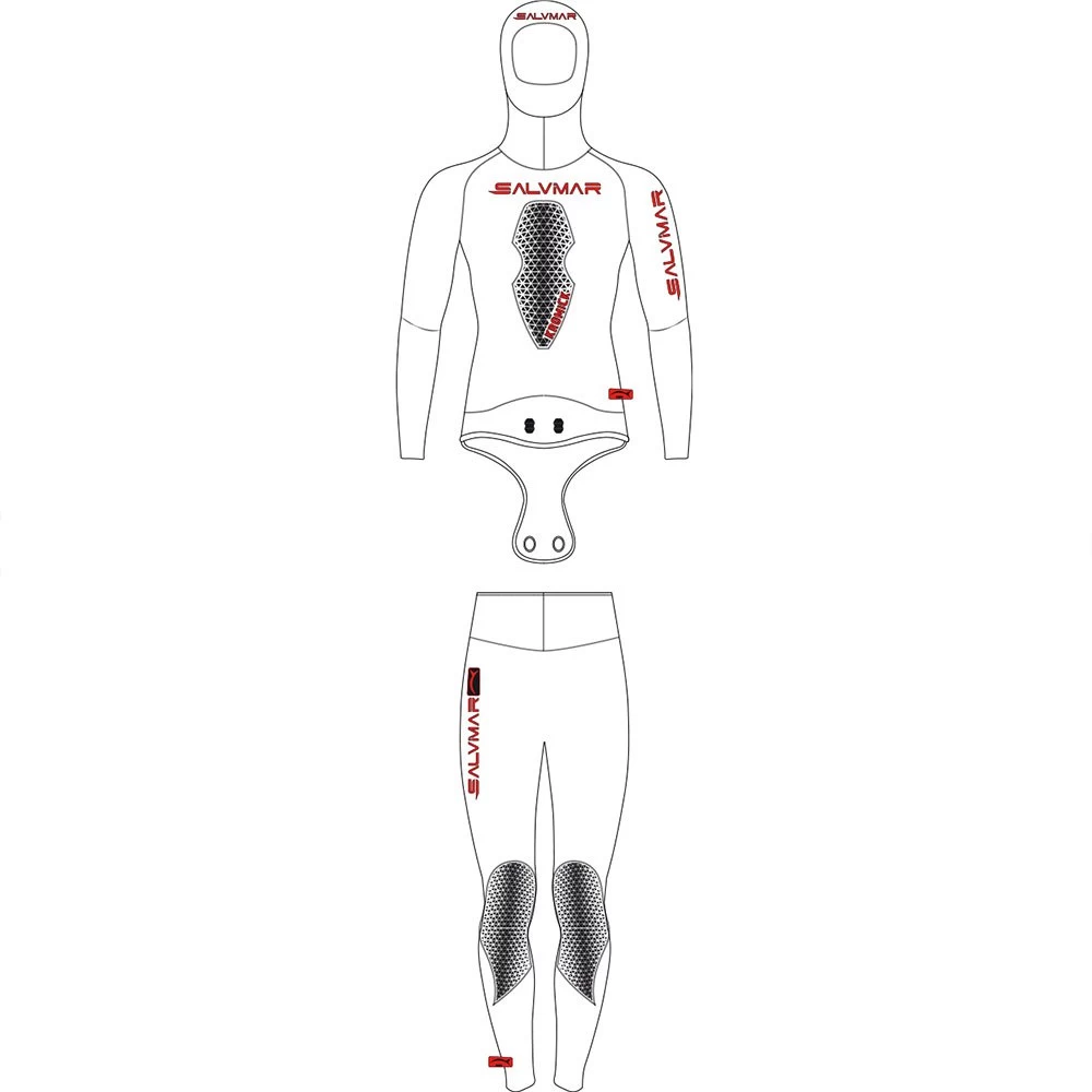 – Two-piece wetsuit, jacket with hood and high-waisted trousers