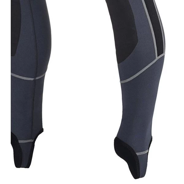Non-chafing flat-seam stitching is comfortable against the skin. Thumb loops and foot stirrups prevent ride-up when worn as a first layer beneath a thicker wetsuit.