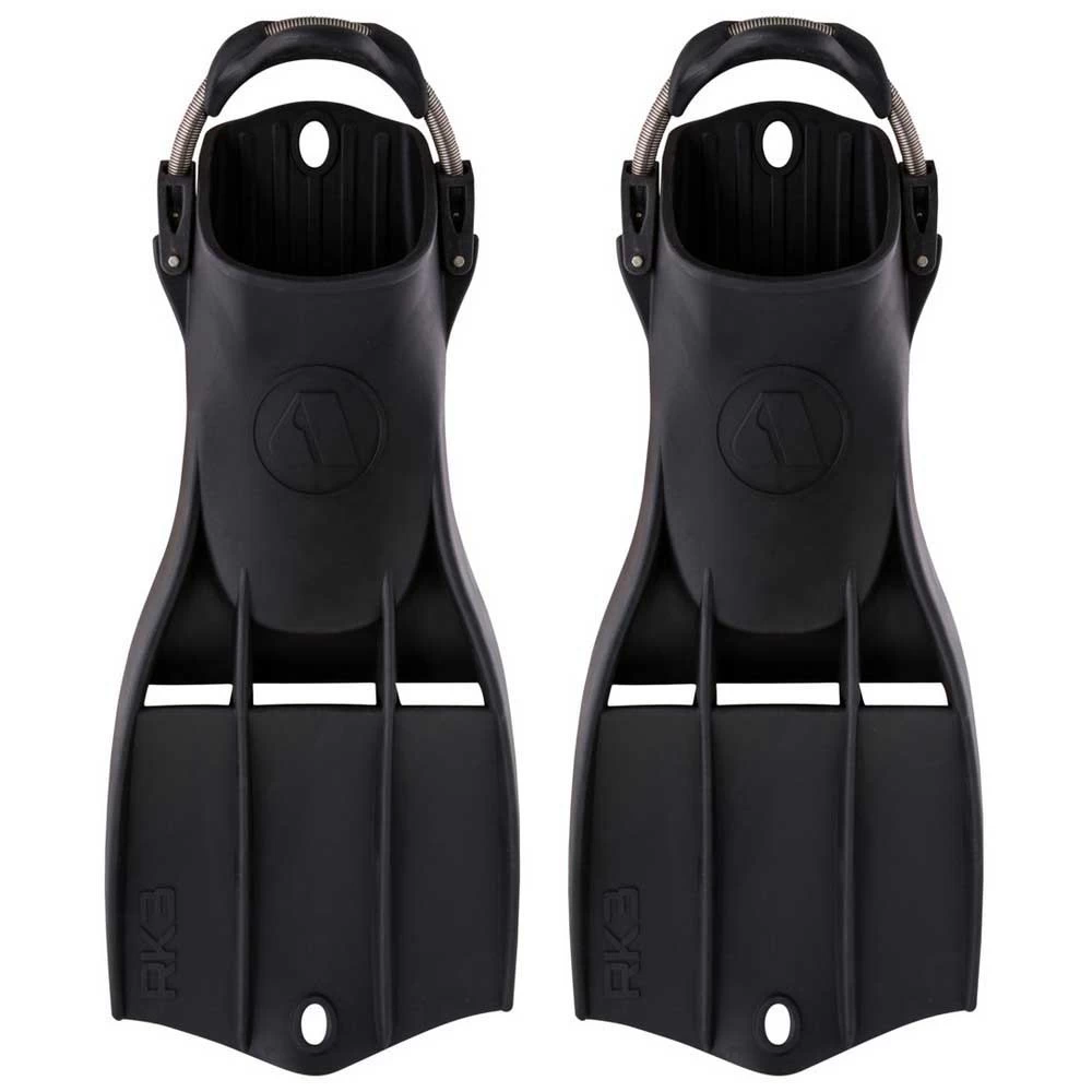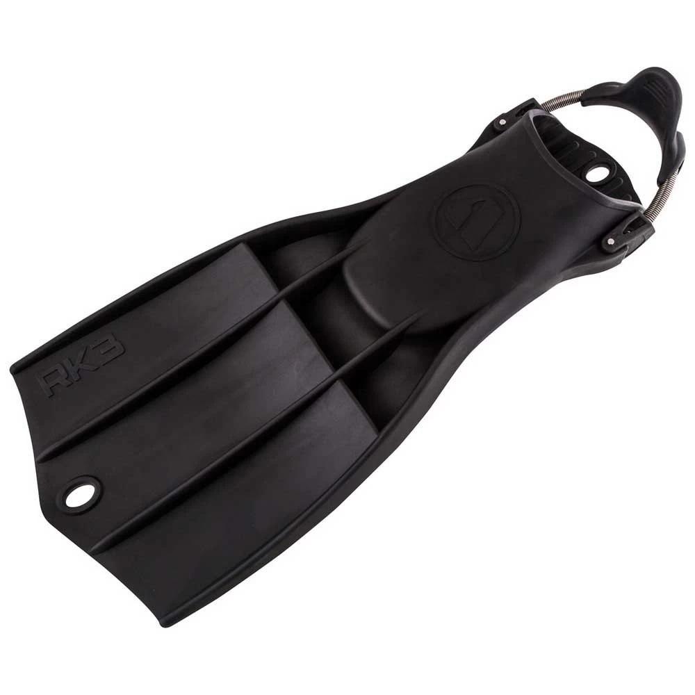 Designed in collaboration with the US military and renowned for outstanding performance and reliability, the Apeks RK3 is a rugged thermoplastic rubber fin featuring an over-sized foot pocket to accommodate drysuit boots and a spring strap for easy donning and doffing. The RK3 is available in three sizes: Medium, Large and Super. We didn´t give the RK3 fin a shoe size range as this can be very misleading. The environment that an RK3 is used in will tend to dictate the size of fin that you need, for example do you dive in a warm environment wearing wetsuit boots, or are you walking across pebbled beaches and wearing a drysuit and rigid dry boots? Both forms of footwear may be a size 9, but will take up different amounts of space in the fin foot pocket.