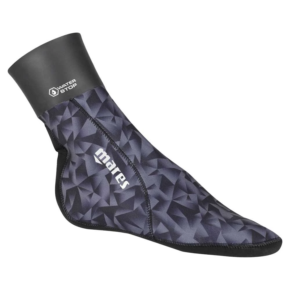 The Polygon BK 30/50 freediving socks are made of neoprene of differentiated thickness, with 3mm on the bottom to allow a good fin fit and 5mm at the top for a better fit with wetsuit pants. The differentiated thickness helps block the flow of water.