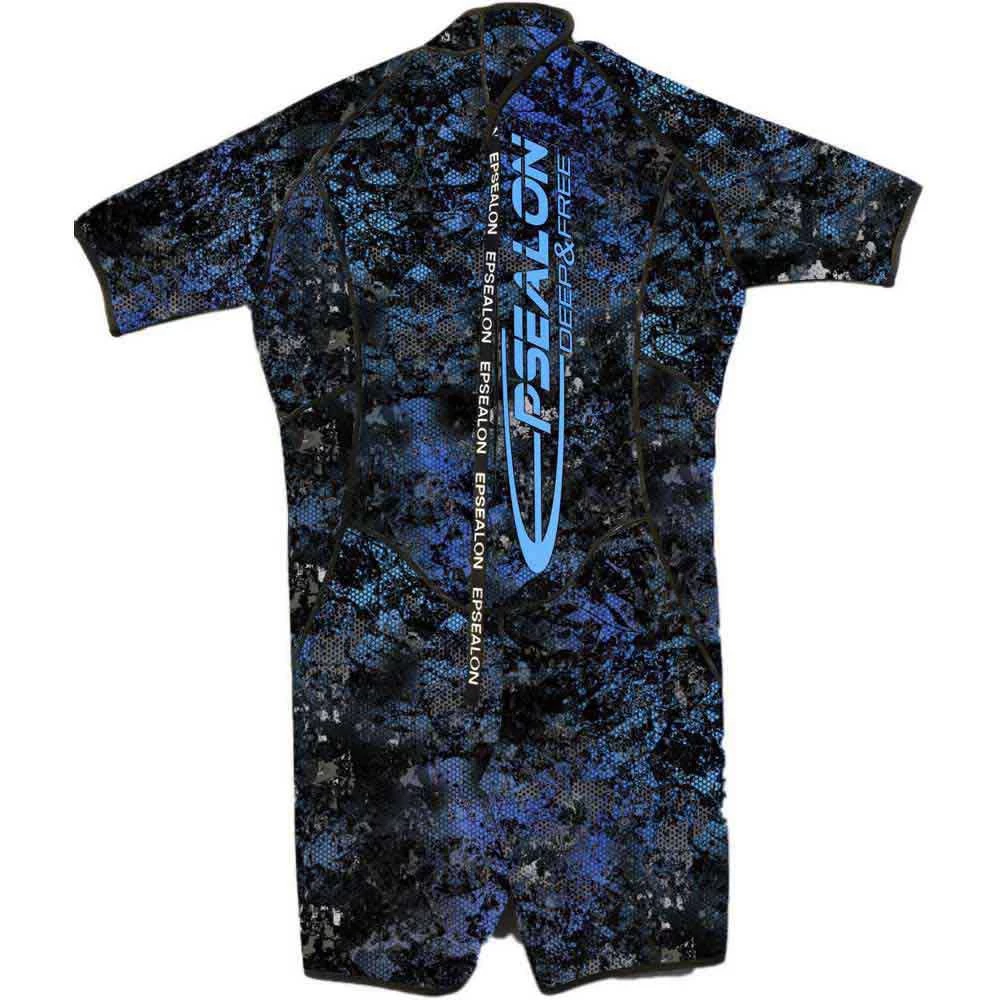 Shorty wetsuit 2.5mm nylon camo outside / black jersey inside YKK back zip closure with strap for ease of use Velcro adjustable collar flap Braiding finish at each edge Recommended for warm or tropical waters.